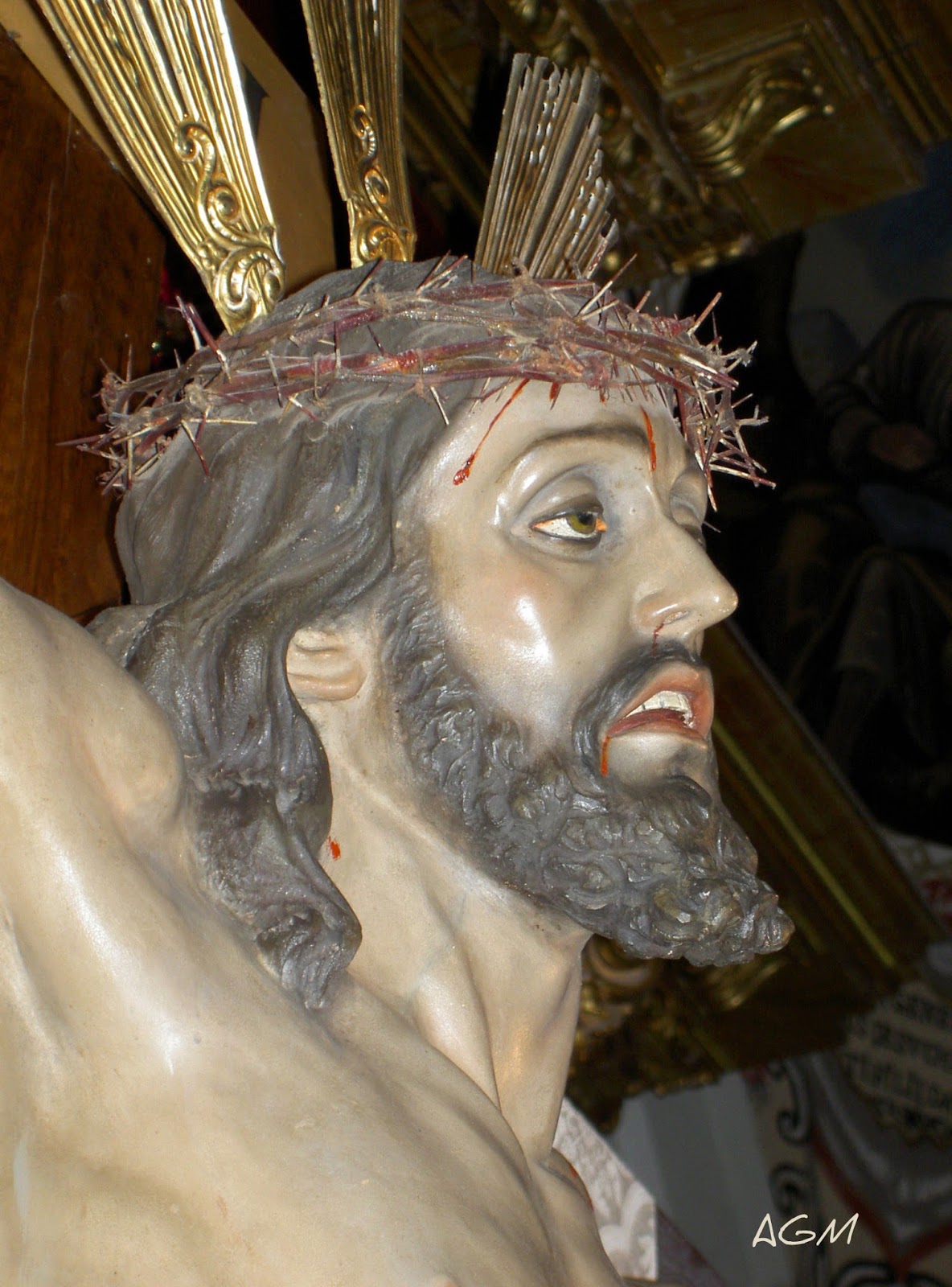 Esta imagen debió tallarse probablemente hacia el siglo XV, en todo caso debe coincidir con las primeras referencias escritas conocidas de 1520, como indican sus rasgos arcaicos y su anatomía. Representa un Cristo de gran tamaño en el momento de la expiración, con la cabeza ligeramente inclinada, pero manteniendo todavía los ojos abiertos. Sus largos brazos se abren para clavarse por las palmas de unas manos cuyos dedos permanecen totalmente extendidos. Sus desnudas piernas se cruzan para que un pie sobre el otro sean penetrados por un único clavo. Bajo ellos una calavera nos recuerda la finitud de la vida terrena, marcada por la muerte y por el gesto supremo de la Redención.